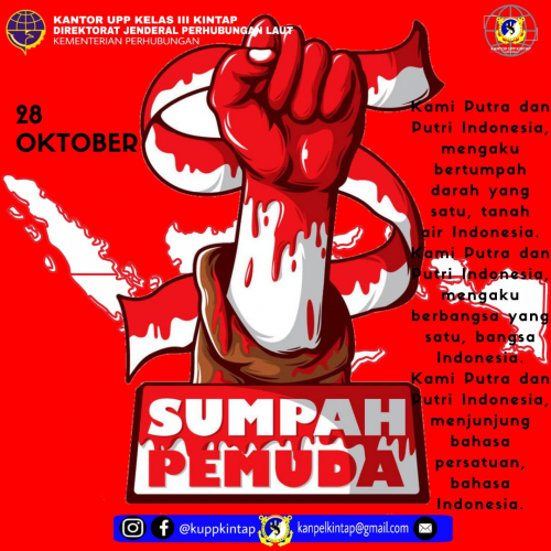 Kami Putra dan Putri Indonesia, mengaku bertumpah darah yang satu, tanah air Indonesia. Kami Putra dan Putri Indonesia, mengaku berbangsa yang satu, bangsa Indonesia. Kami Putra dan Putri Indonesia, menjunjung bahasa persatuan, bahasa Indonesia