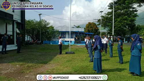 Selamat pagi #Kawanlaut Kepala kantor dan seluruh staff Kantor Unit Penyelenggara Pelabuhan Kelas III Soasio melaksanakan apel pada hari senin (23/11/2020) . Kepala Kantor Bapak Suleman Bautu S. sos mengingatkan untuk selalu menjaga kekompakan dan meningkatkan pelayanan dibidang pelayaran kepada masyarakat dan memperhatikan cuaca laut mengingat kondisi datangnya badai la nina.