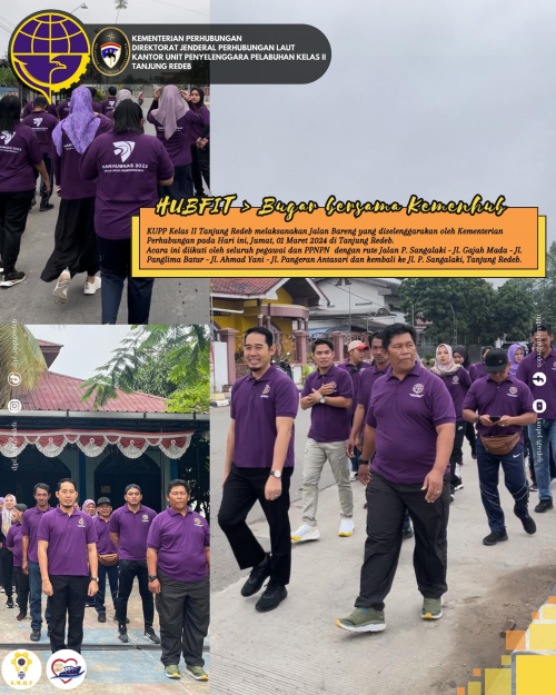 Mengawali bulan Maret ini, KUPP Kelas II Tanjung Redeb melaksanakan Jalan Bareng dalam Rangka HUBFIT> Bugar Bersama Kementerian Perhubungan supaya badan tetap fit dan kerja jadi lebih produktif.