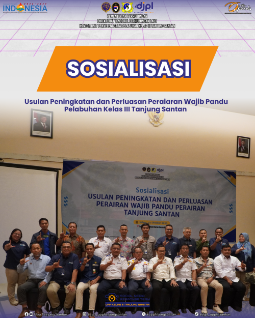 Selasa, 7 Oktober 2025 - Bapak Abdul Wahid, S.E., Kepala Kantor UPP Kelas III Tanjung Santan, menyelenggarakan Sosialisasi Usulan Peningkatan dan Perluasan Peraiaran Wajib Pandu Pelabuhan Tanjung Santan sebagai bentuk tindak lanjut pada Berita Acara Nomor BA-UPP.Tsn 11 Tahun 2025 tanggal 07 Juli 2025 tentang Sosialisasi Usulan Peningkatan dan Perluasan Perairan Wajib Pandu pada Perairan Tanjung Santan di wilayah kerja Kantor Unit Penyelenggara Pelabuhan Kelas III Tanjung Santan.